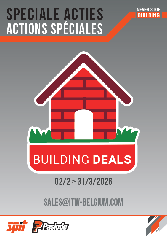 Wij hebben voor je SUPER DEALS op machines/accessoires van Makita, Carat en Dewalt, bevestigingen van Fischer en Spit Paslode en kleding van Blaklader, Snickers en Dassy. Ontdek al onze bouwacties in onze actiefolder.